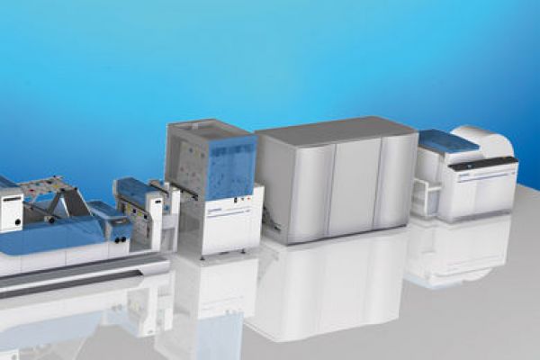 Modulární HUNKELER řešení knižního bloku pro výrobu slepených knižních bloků inline s kontinuálním digitálním tiskovým systémem o šíři pásu papíru až 30". Spolehlivé, vysoce výkonné řešení včetně falcování, řezání a stohování, vhodné pro soudobou knižní produkci.