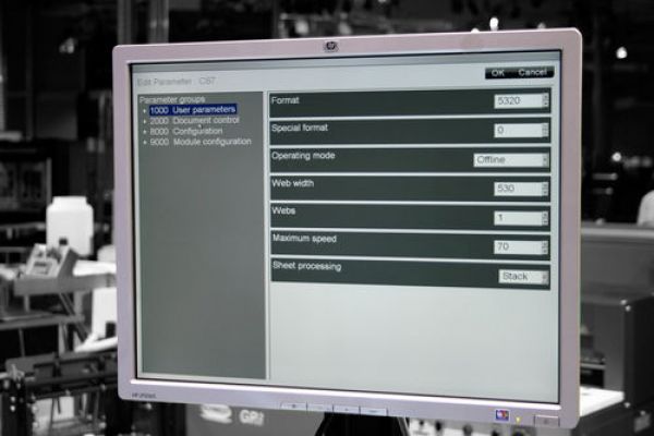 - Cross cutting (option edge trim, gutter cut, longitudinal slitter)